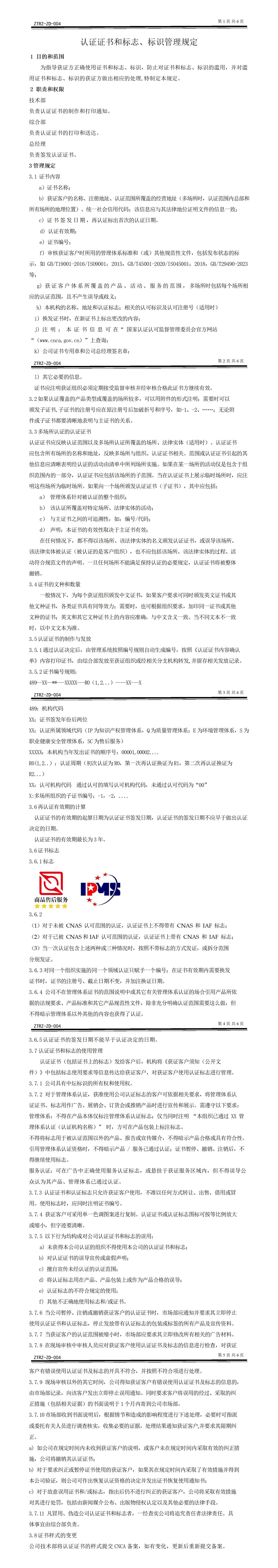 认证证书和标志、标识管理规定